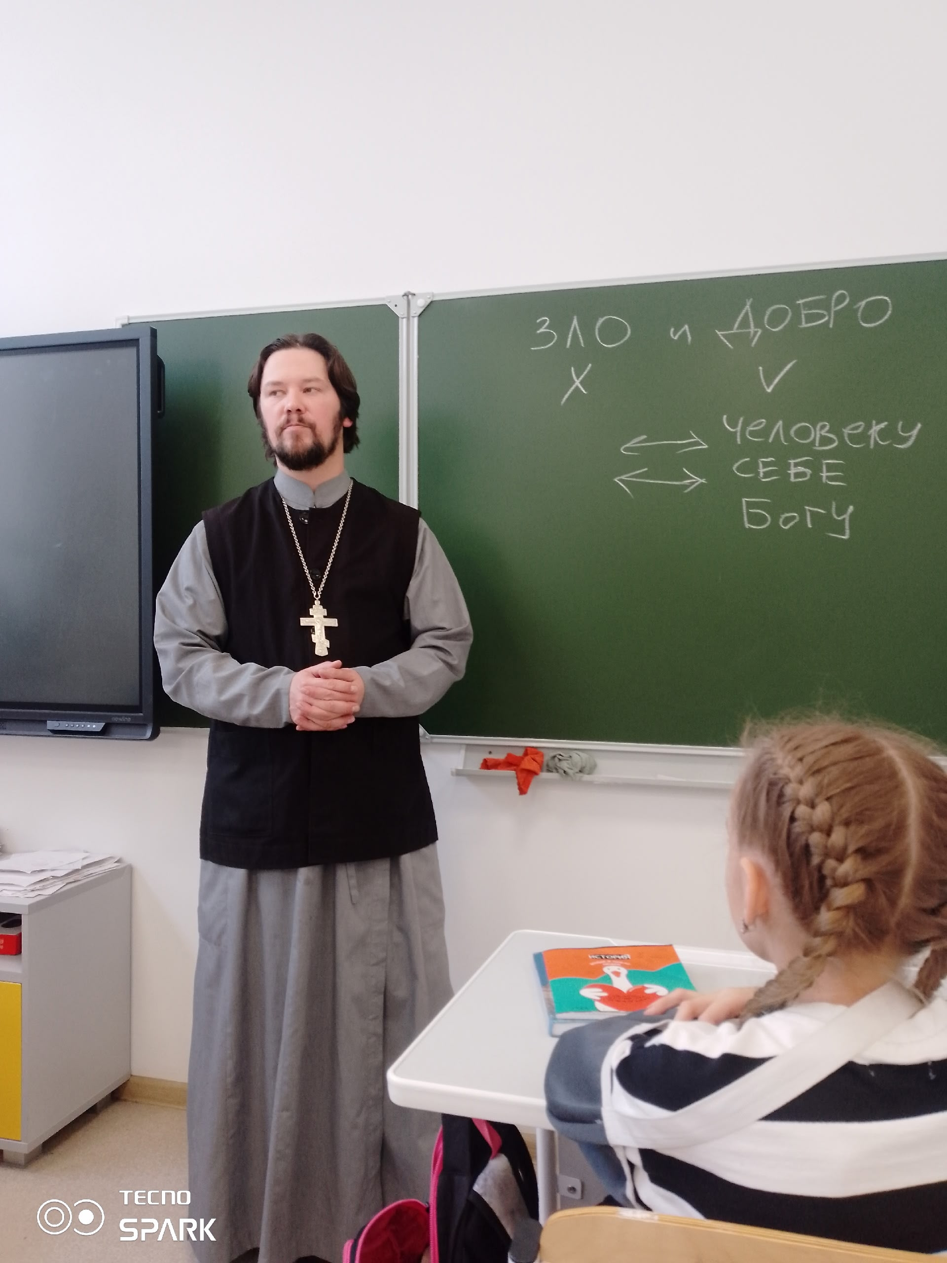 В октябре 2025 года возобновились регулярные ежемесячные встречи священников прихода праведного Иоанна Кронштадтского с учащимися школы №88 «Галактика»