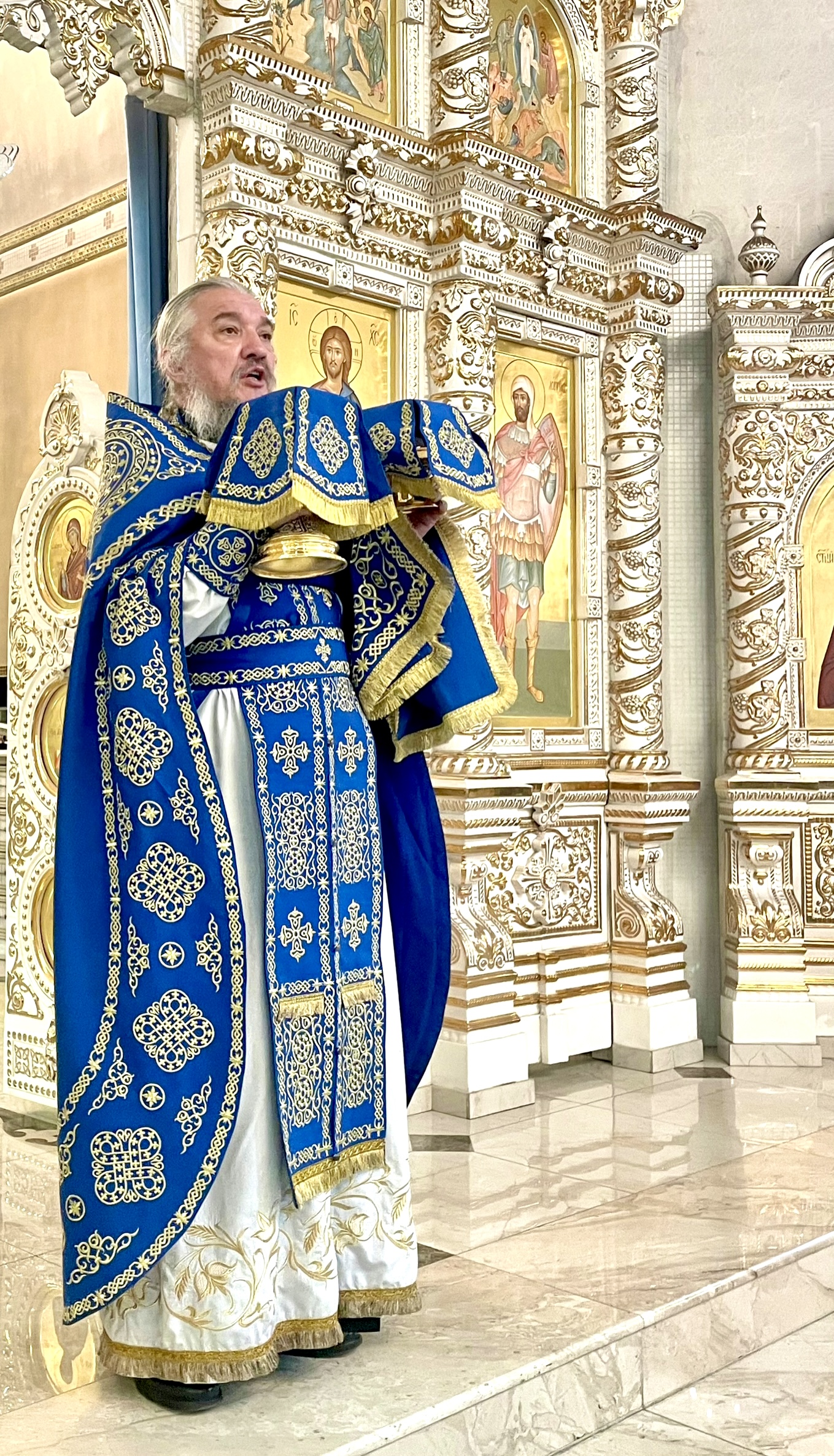 По окончании Богослужения были прочитаны молитвы о святой Руси и воинстве нашем и отслужен водосвятный молебен.